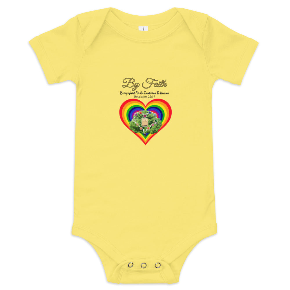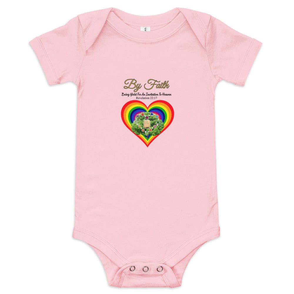 Dress your baby to the nines with this 100% by faith baby cotton one piece. It has three snap leg closure for easy changing, a comfortable envelope neckline, and a beautiful print that's bound to get the baby all happy and giggling.