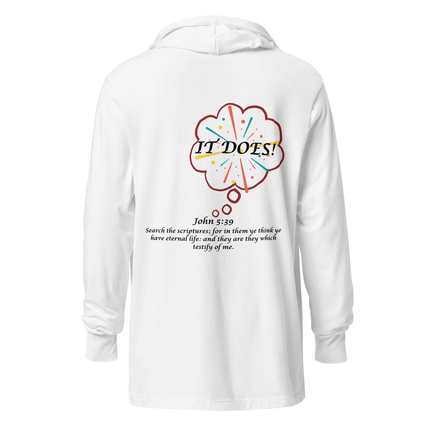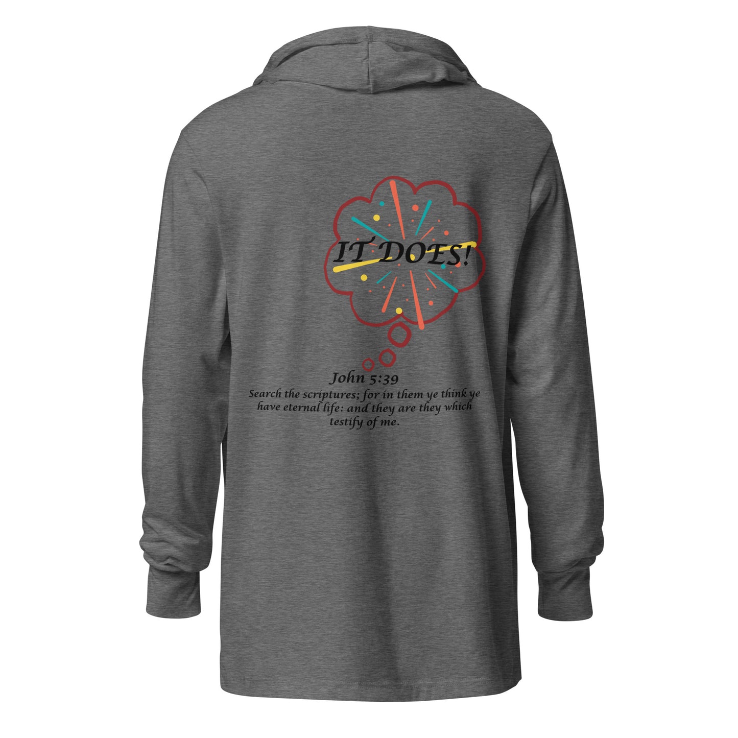 With its long sleeves and comfortable hood, this by faith John 5:39 tee is perfect for layering, allowing you to create stylish outfits all year round. Plus, its lightweight construction allows for unrestricted movement, ensuring that you feel at ease no matter the occasion.