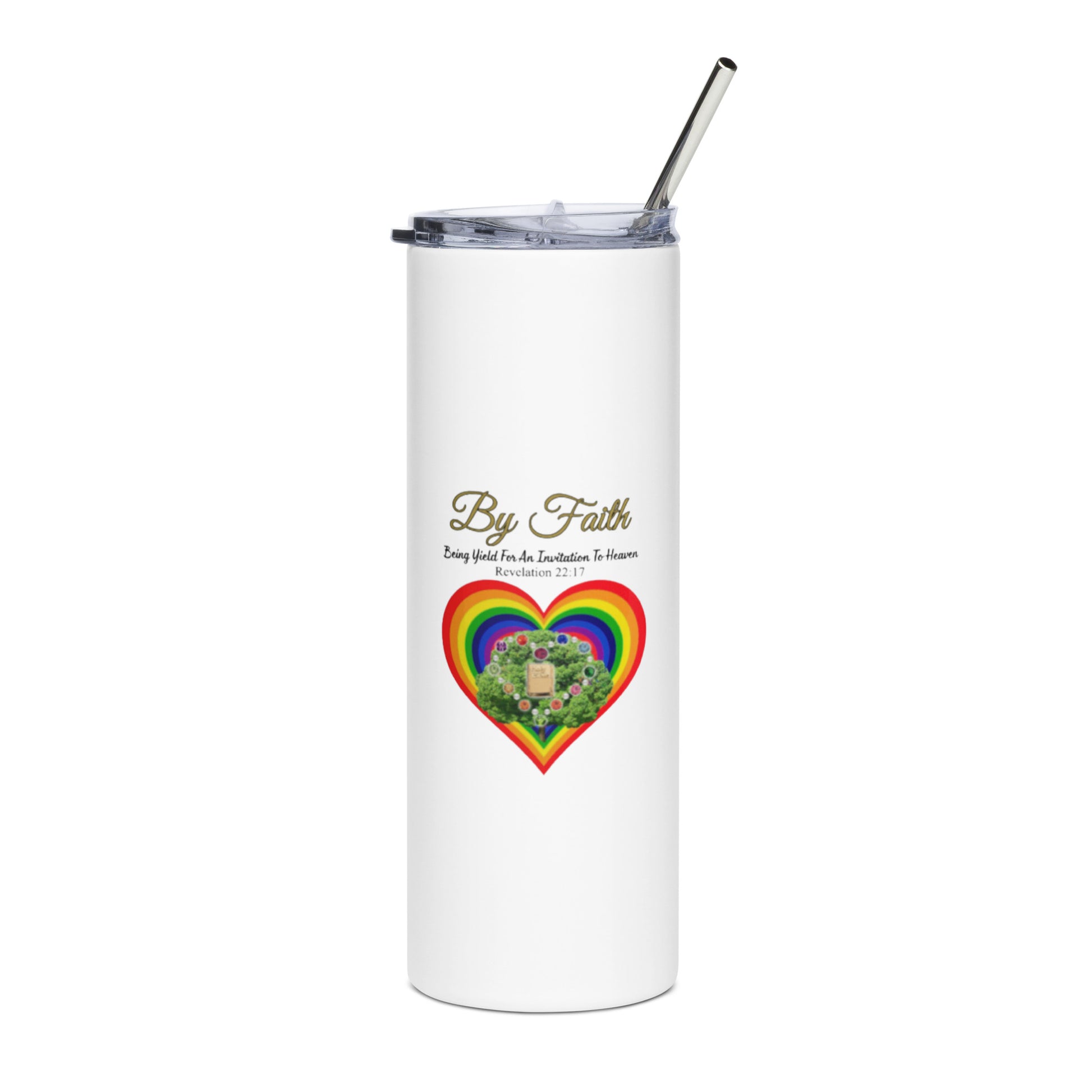 Enjoy hot or cold drinks on the go with this by faith stylish stainless steel tumbler! This reusable tumbler with a metal straw is a perfect combo for hot or cold drinks at any time of the day.